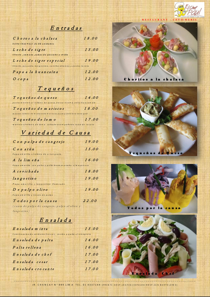 Welcome to Restaurant El Chef Paul, a culinary gem located in the heart of Lima, Peru, at Jr. Chancay 999. This restaurant has quickly become a favorite for both locals and visitors, thanks to its diverse menu and exceptional service.